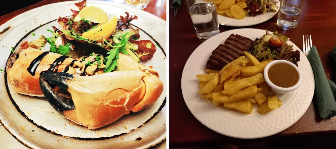 The vibe is cozy and rustic, creating a welcoming environment to enjoy fresh seafood or tender steak, making it a gem in the heart of Ballycastle.